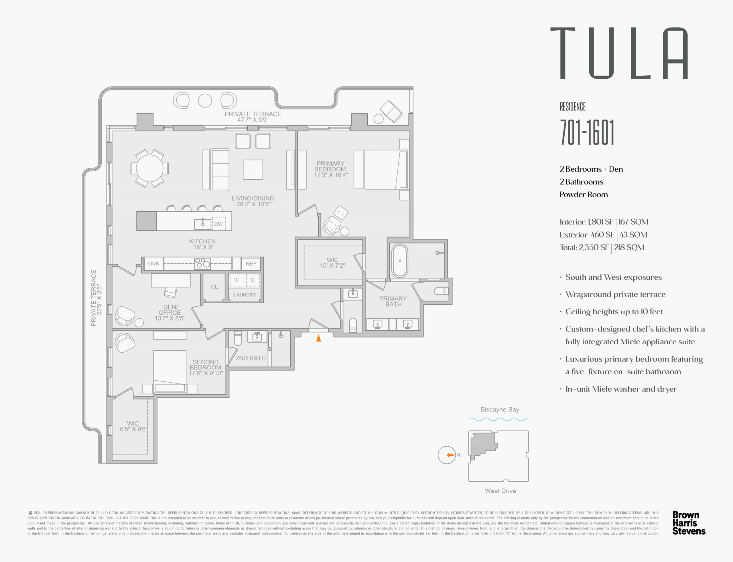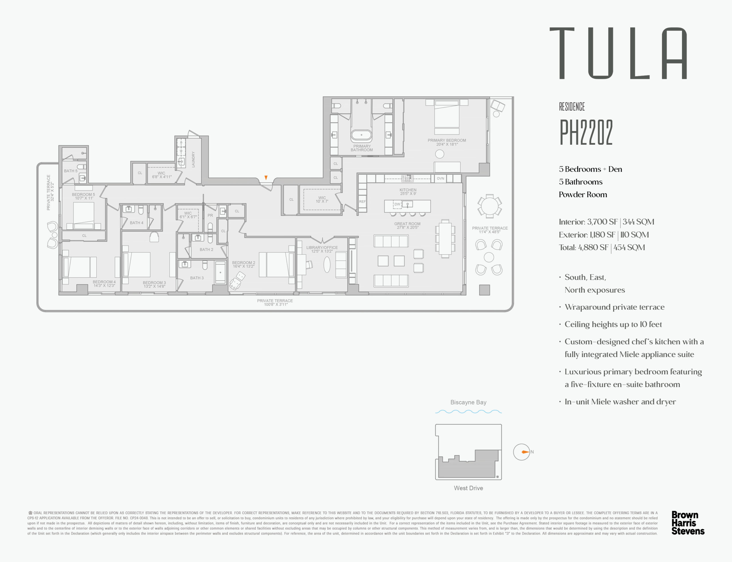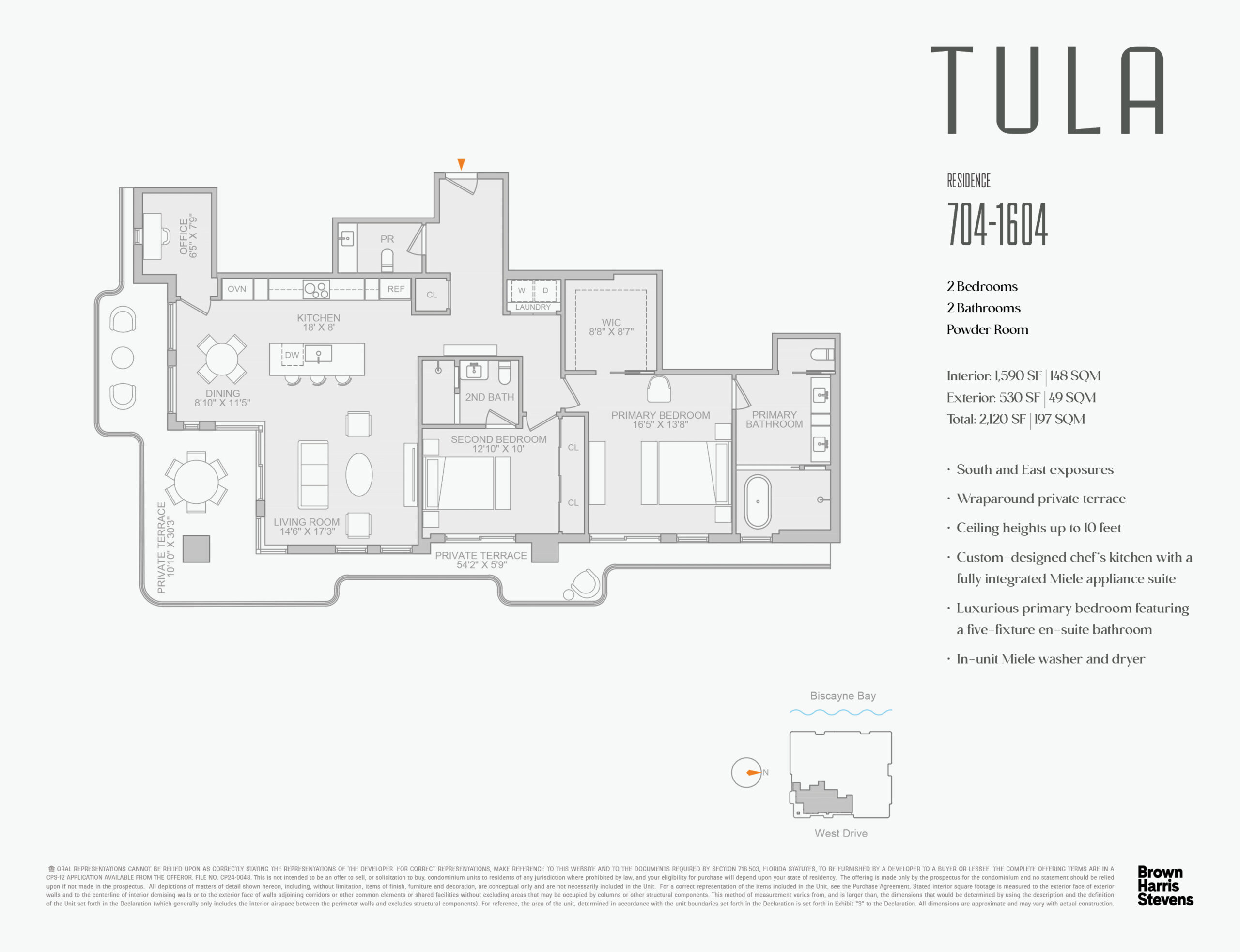 TULA Residences is an exclusive boutique luxury waterfront condominium featuring 54 two-to-three-bedroom corner residences and six five-bedroom half-floor penthouses. Each home boasts efficient floor plans, organic-inspired interiors, 10-foot ceilings, custom Italian chef’s kitchens, floor-to-ceiling windows, and private glass-enclosed terraces. Residents enjoy stunning, unobstructed panoramic views of Biscayne Bay, Miami’s skyline, and the Atlantic Ocean. Exceptional amenities include a resort-style infinity pool with cabanas, fitness and wellness center, media room, lounge, pet spa, parking garage, and 24-hour concierge, with delivery anticipated in October 2026.